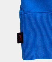 鮮やかなブルーのカラーがスタイリングのアクセントになります。ネック部分にはV字ガゼットを採用し、首まわりの伸びを抑える仕様に。