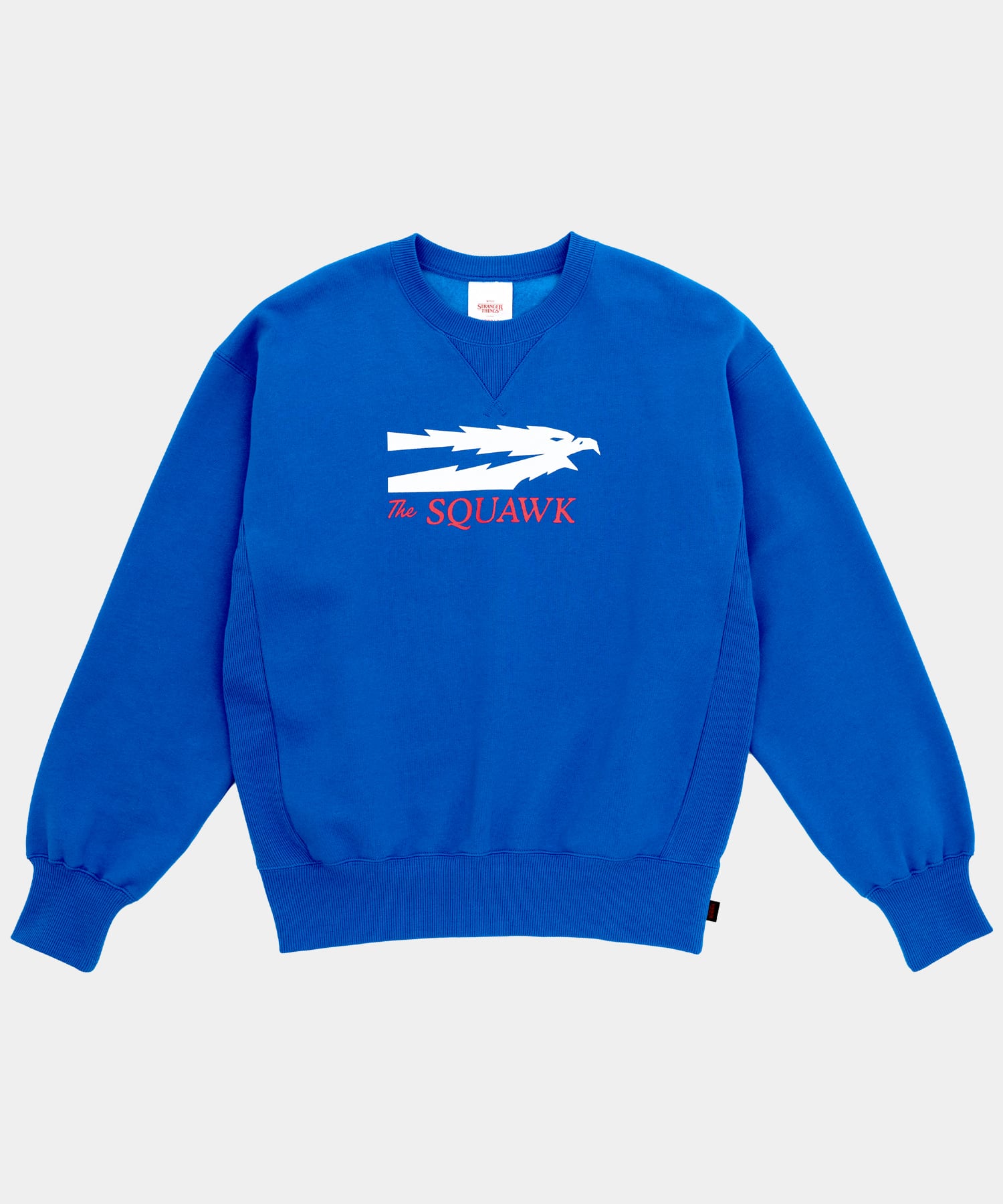 「SQUAWK」のグラフィックをフロントに配したクルーネックスウェットシャツ。