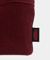 ヴィンテージ感のあるゴールドジッパーと深みのあるバーガンディーカラーの組み合わせが、落ち着いた存在感を演出します。