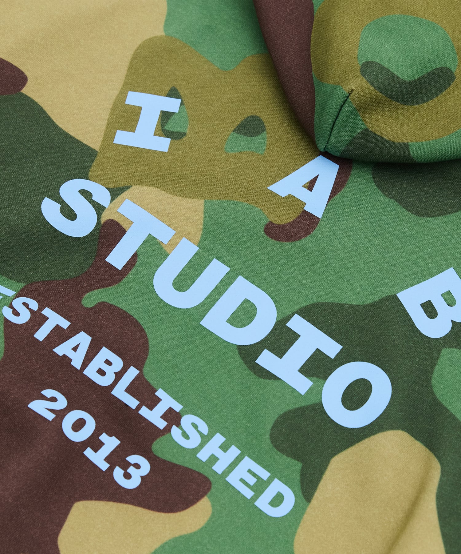 IAB STUDIOのアルファベットをパターン化したビッグサイズのカモプリントが特徴で、