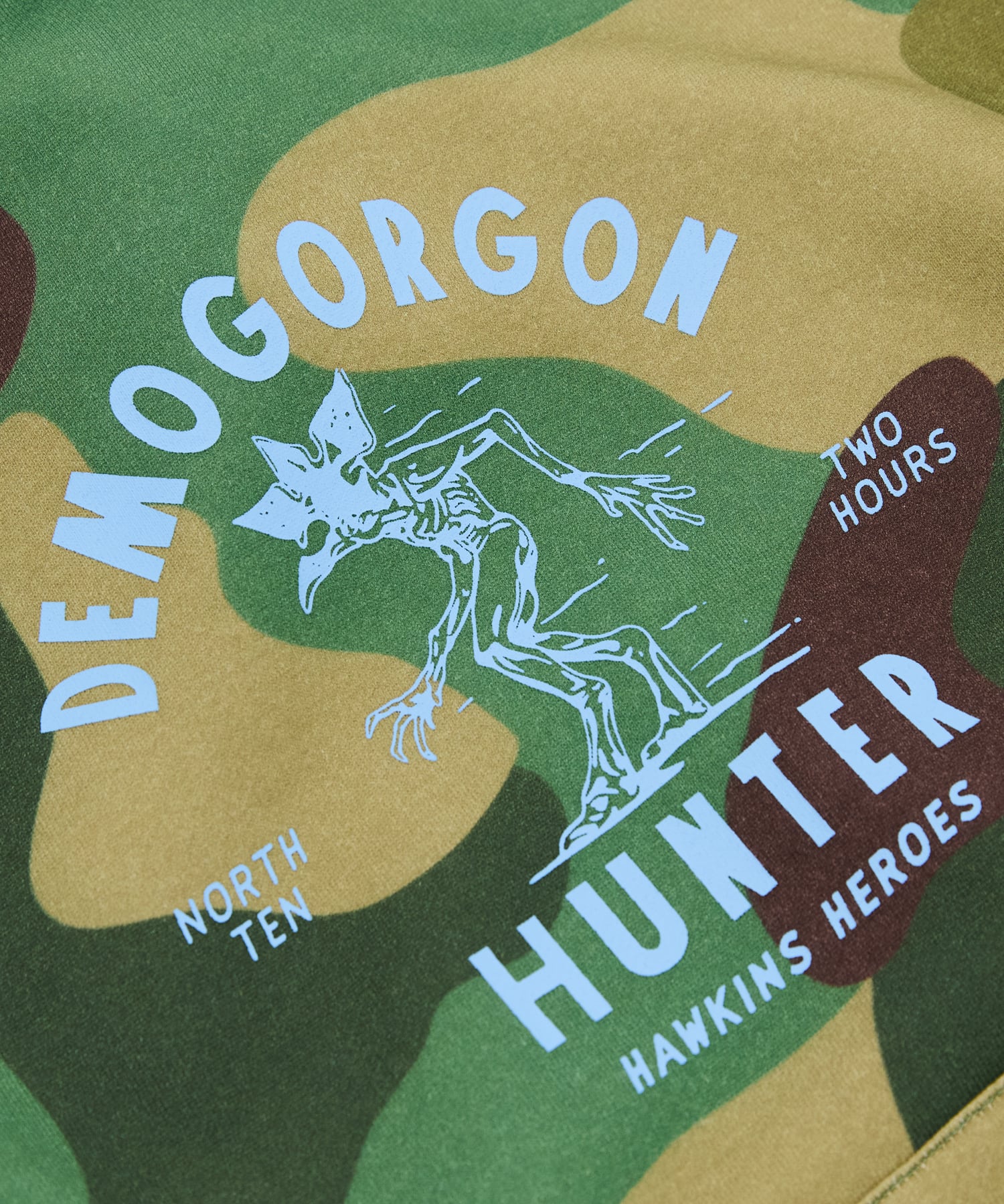デモゴルゴンのハンティングシーンでキャラクターたちが着用する衣装から着想を得たカモフラージュパーカー。